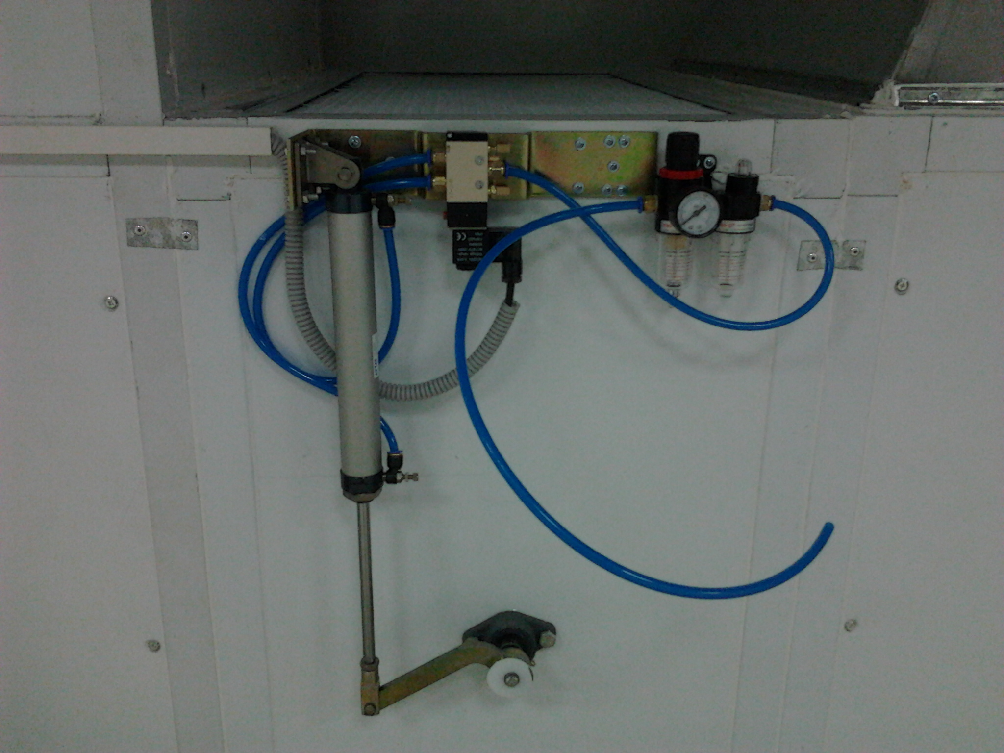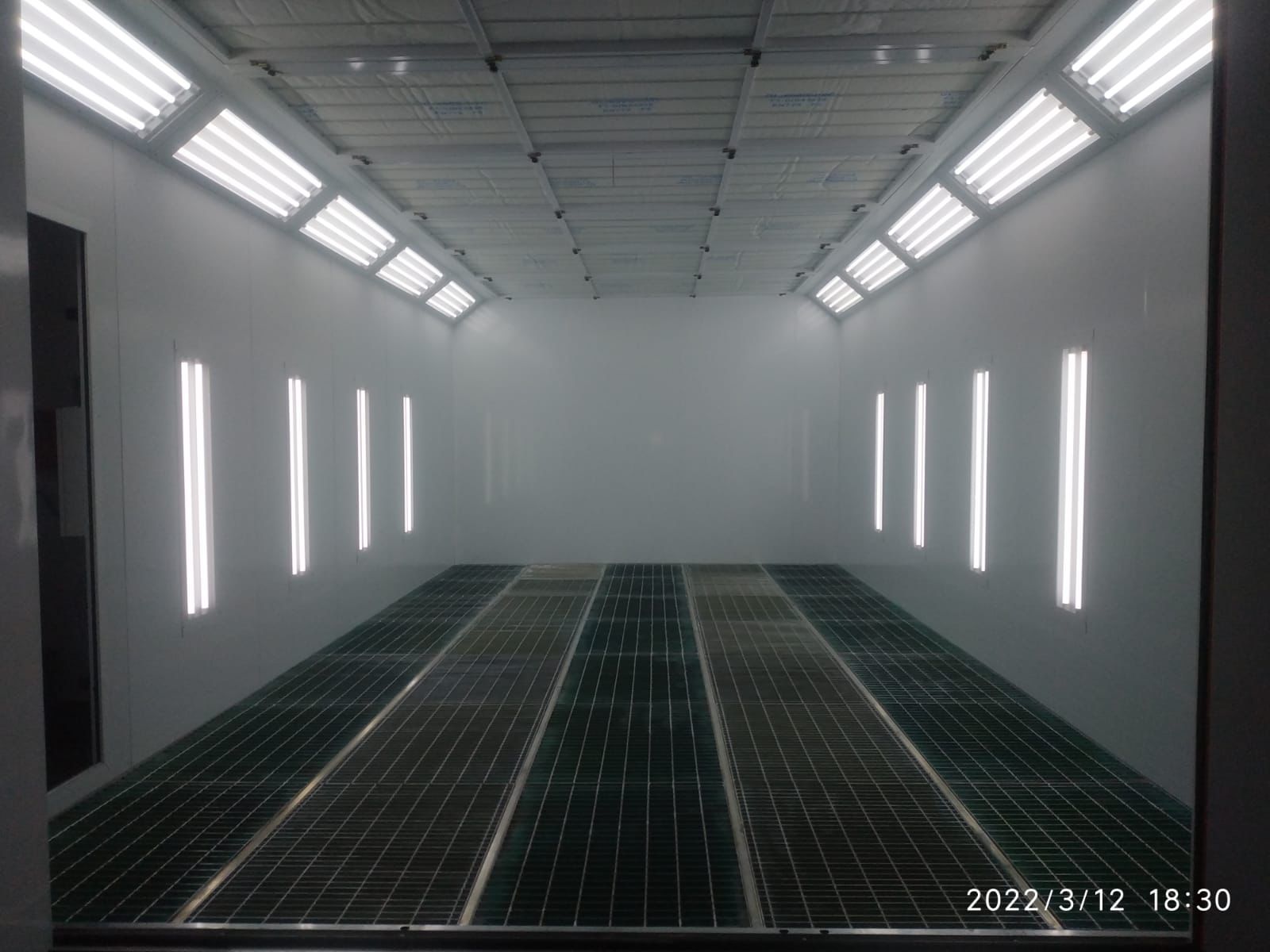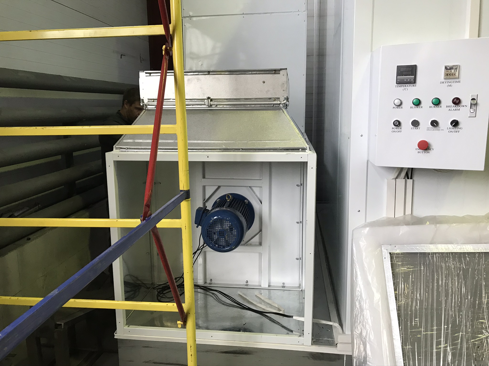 На данной модели покрасочной камеры используется дополнительное боковое освещение, оно включает в себя 8 плафонов, в каждом по 2 лампы мощностью по 18 Вт каждая. Блок управления и его компоненты импортного производства, они защищены от перегрузки, перегрева и пропадания фазы, мотор с линейным приводом. При истечении заданных значений времени, работа камеры автоматически прекращается. Покраска происходит при постоянной температуре. Питание камеры осуществляется посредством трёхфазной сети с напряжением 380 В, мощность установки 14 кВт.