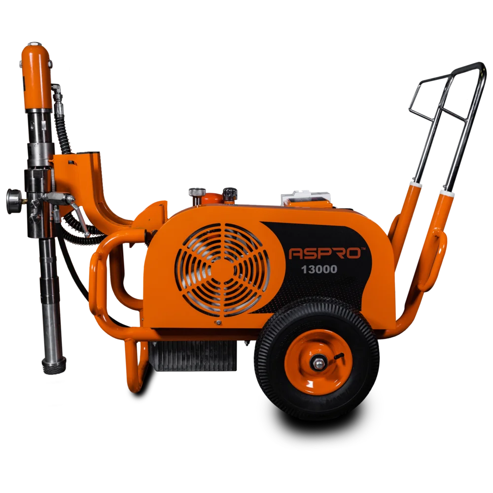 Агрегат ASPRO-13000 (220V) предназначен для выполнения крупномасштабной работы, такой, как окраска железобетонных конструкций (тоннели, опоры мостов, колодцы, портовые конструкции, дымовые трубы и т.п.), гидроизоляционные работы (фундаменты, подвалы, плоские кровли), антикоррозионная обработка металлоконструкций (промышленные металлические конструкции, трубопроводы).