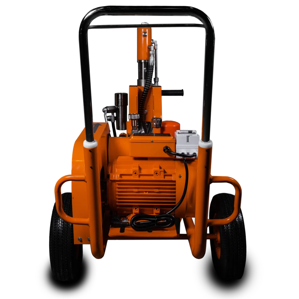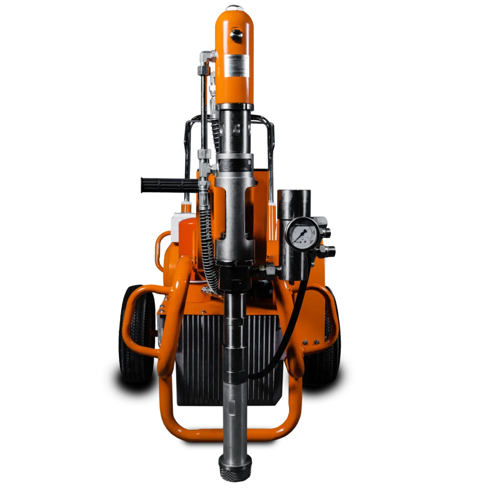Поршневой насос агрегата приводится в действие гидросистемой, которая, в свою очередь, приводится в действие электрическим двигателем (220В) через ремень. Гидропоршневая система позволяет работать гораздо эффективнее, чем классические поршневые окрасочные аппараты с электродвигателем