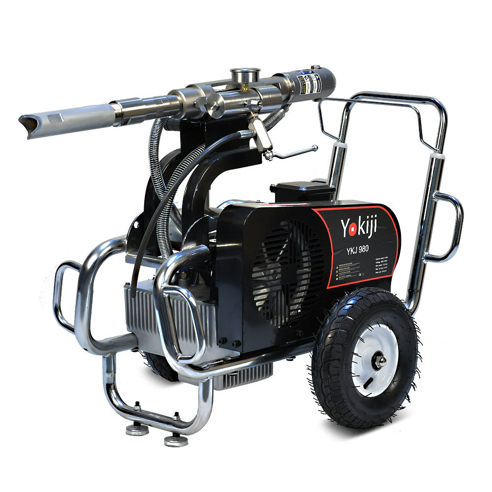 YOKIJI YKJ 980 – гидропоршневой безвоздушный электрический окрасочный аппарат. Он подходит для распыления красок, эмалей, шпаклевок, огнезащитных, гидроизоляционных, антикоррозийных и цинконаполненных составов, мастик, грунтовок и других лакокрасочных материалов, предназначенных для нанесения через поршневой безвоздушный окрасочный аппарат.