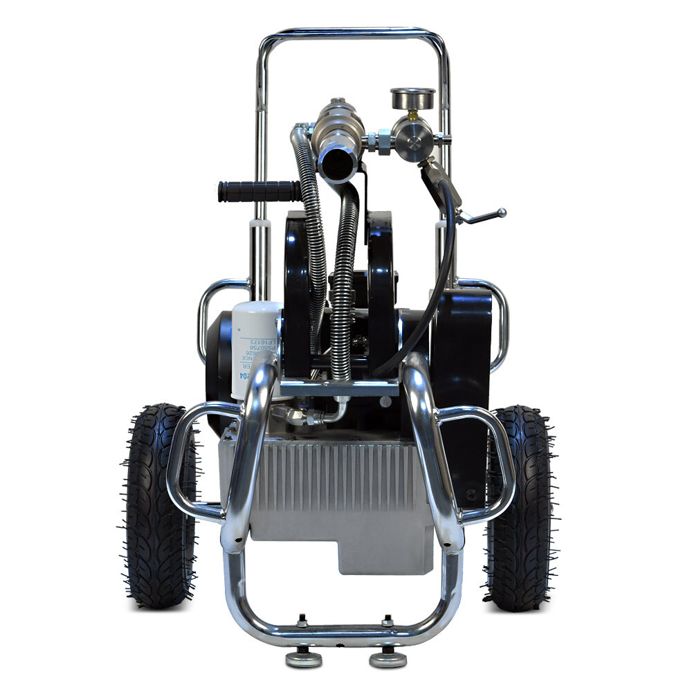 Аппарат используется на стройплощадка при отделке помещений, зданий и сооружений, а также на производствах при покраске больших конструкций. Аппарат присоединяется с сети 380B, обладает высокой производительностью (12 л/мин) и позволяет присоединять до 3 малярных постов и подавать материал на высоту до 120 метров.