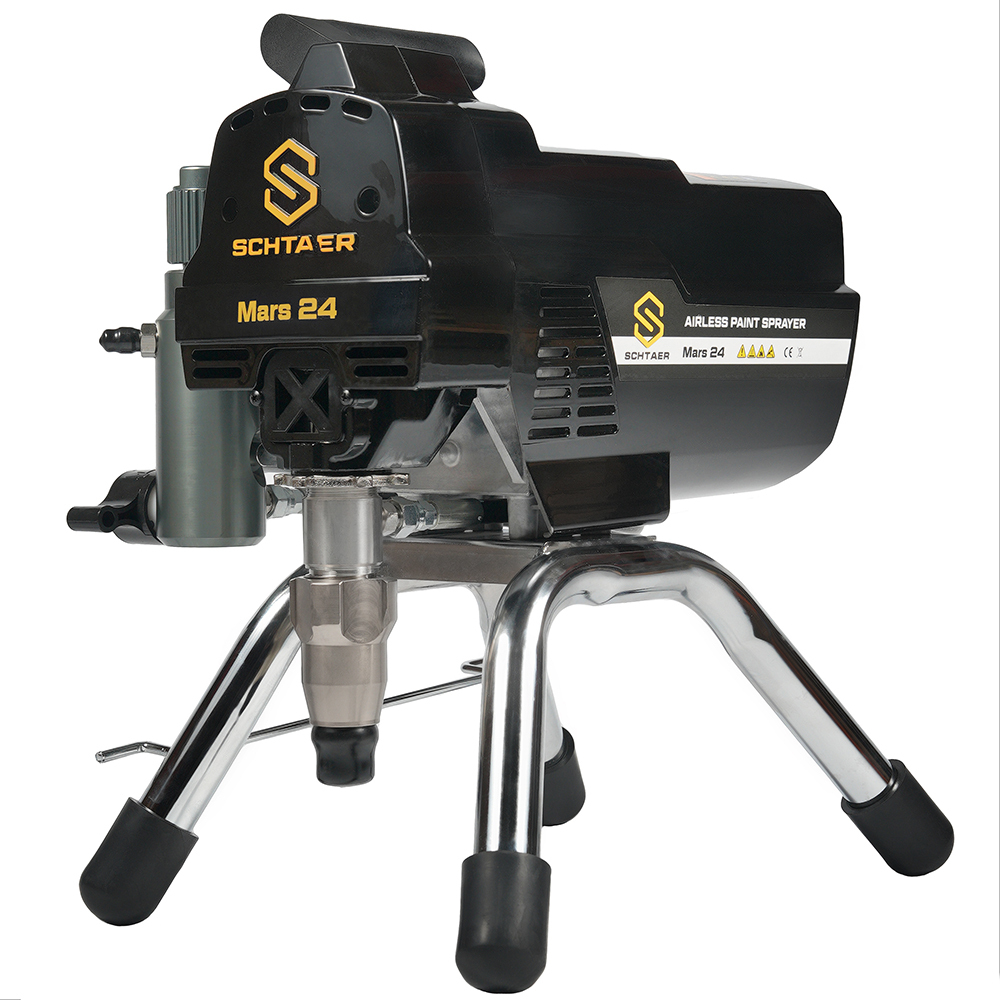 Schtaer Mars 24 – компактный легкий поршневой окрасочный аппарат с фильтром материала, электронной регулировкой давления и бесщеточным мотором.