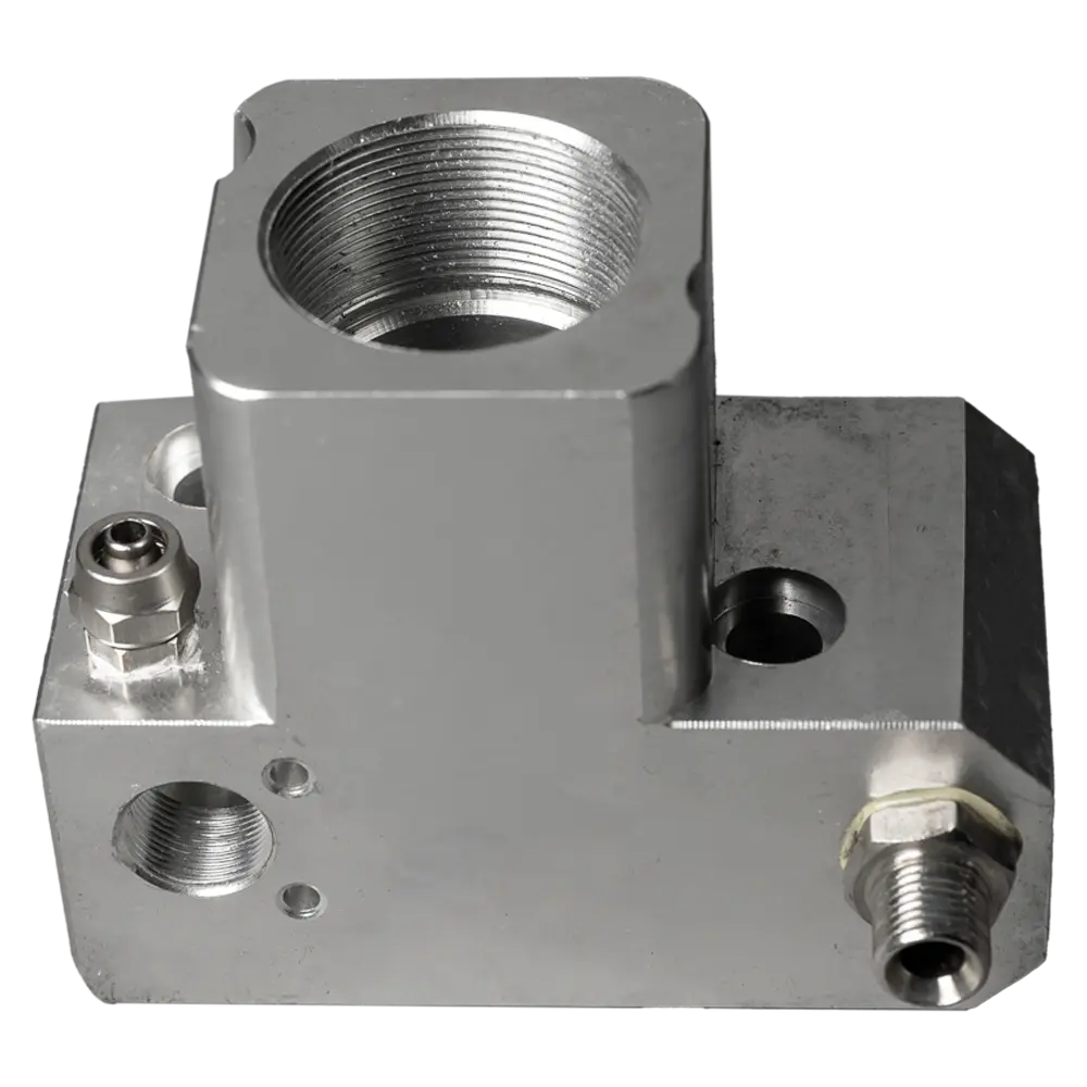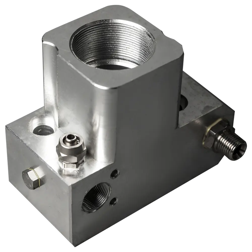 В блоке установлены уплотнения, плунжер, дренажный кран, всасывающий клапан, золотник системы регулировки рабочего давления.